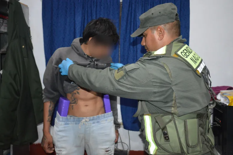 Detuvieron a dos personas por trasladar adosados al cuerpo y en el interior de sus calzados marihuana y cocaína