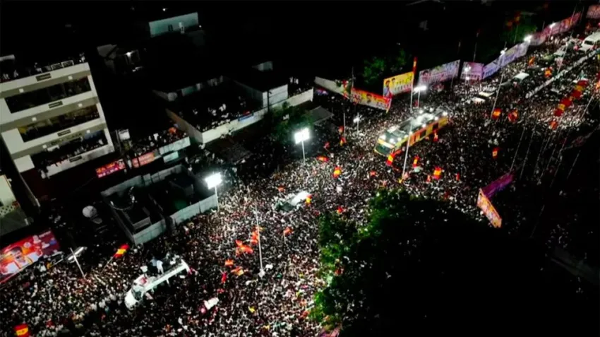 Vijay se encontraba dirigiendo un discurso cuando se desató el caos entre los presentes, lo que obligó a interrumpir la intervención. De acuerdo con The Hindustan Times, gran parte de la multitud intentó acercarse al escenario para ver al actor, lo que provocó el derrumbe de las barricadas y la estampida.