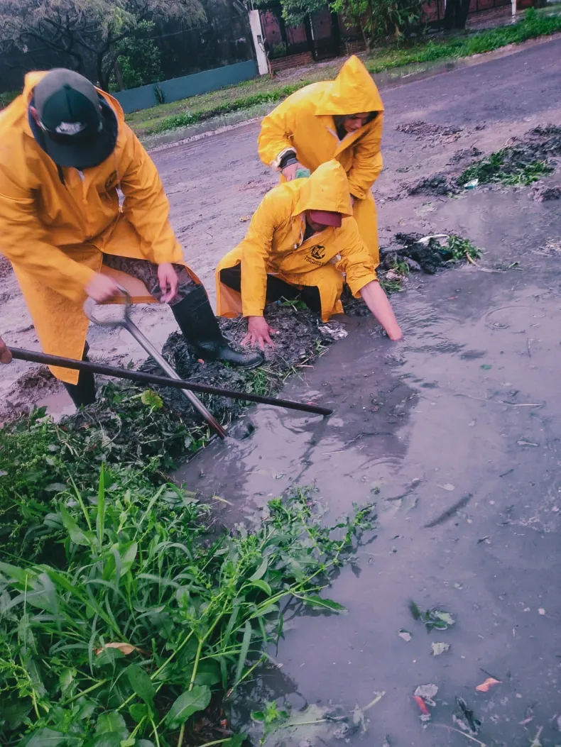 "Más allá del trabajo que hacemos en la traza de la cuneta a cielo abierto, procedimos con la limpieza en los cruces de calles, precisamente en los tubos de hormigón, y nos hemos encontrado con una gran cantidad de residuos, desde cubiertas de motos, partes de computadoras y bolsas de plásticos, entre otros, lo que ralentiza el escurrimiento del agua en días como estos", enfatizó el funcionario.