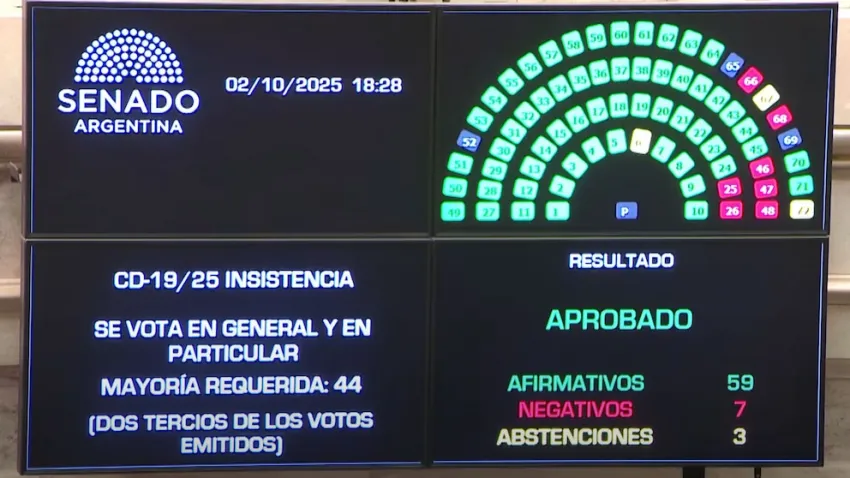 Las dos leyes fueron insistidas con dos tercios de los votos y recuperan vigor. La primera obtuvo 59 adhesiones, mientras que la segunda consiguió 58. Expectativa por el próximo movimiento del Ejecutivo, que días atrás dilató el giro de fondos para la también reactivada norma sobre discapacidad