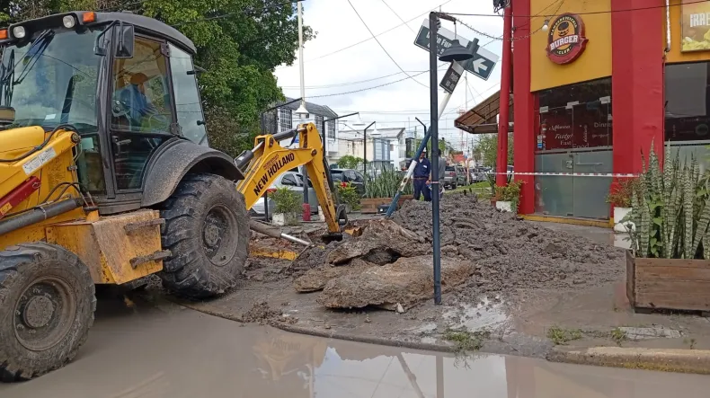 En la mañana de hoy, el tránsito se vio interrumpido en pleno centro de la ciudad, específicamente en la intersección de las calles Deán Funes y Pringles, debido a trabajos de reparación de pluviales que lleva adelante la empresa Aguas de Formosa.