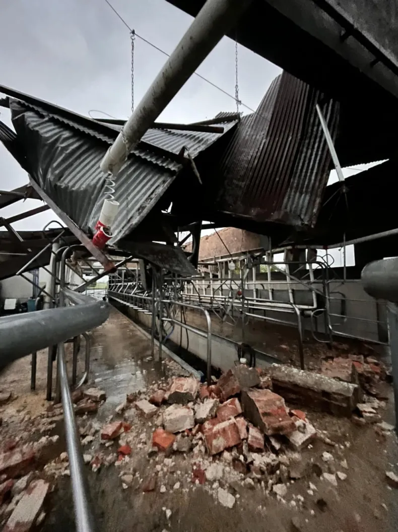 Uno de los sectores más perjudicados por el temporal fue el rural, consignó Ámbito. En Parada Esperanza, un tambo con 280 vacas quedó bajo agua tras perder el techo. El propietario relató que las chapas salieron volando y que los trabajadores debieron correr para refugiarse. La instalación quedó seriamente comprometida.