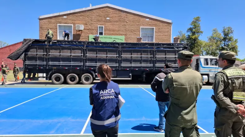 Inmediatamente, con conocimiento del Juzgado Federal N° 2 de Resistencia y en coordinación con personal de la Agencia de Recaudación y Control Aduanero (ARCA), se trasladó el camión con acoplado hasta el asiento del Escuadrón 51 para una requisa mas exhaustiva.