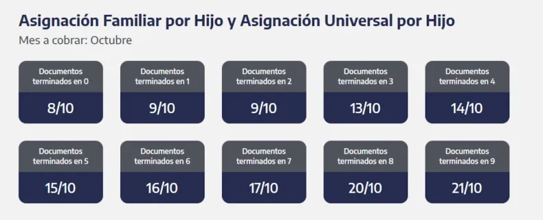 Cuándo se cobra la AUE en octubre (Captura: ANSES)