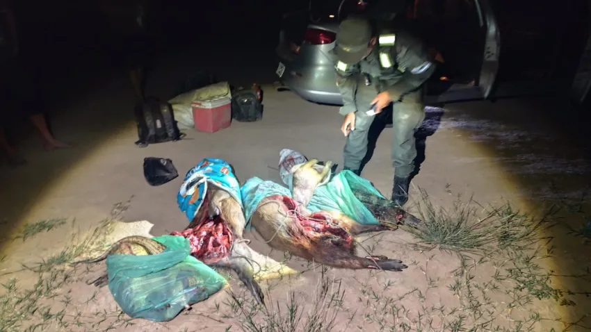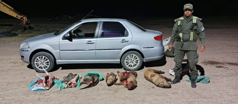En dichas circunstancias y, ante esta premisa, los uniformados advirtieron la aproximación de un vehículo particular en el que viajaban dos ciudadanos mayores que se dirigían hacia la localidad de Clorinda (Formosa). Al registrar el rodado, personal de la Institución halló en el baúl envueltos con bolsas de nylon, tres ejemplares de carpincho, dos yacarés y un ejemplar de la especie Mazama Gouazoubira (guazuncho), faenados.