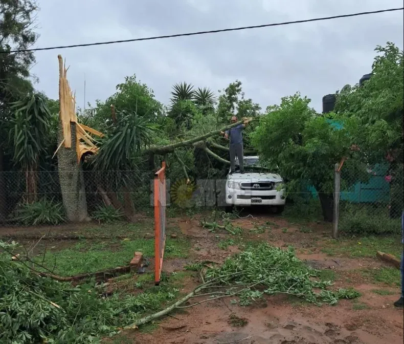 En la provincia de Corrientes, los vientos intensos y las lluvias provocaron graves daños en Mburucuyá, donde una "cola de tornado" afectó el paraje Manantiales, dejando nueve casas sin techo, árboles arrancados y caminos rurales anegados.