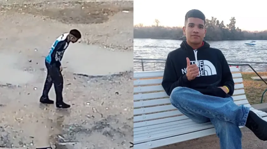 Los videos en los que fue captado el joven muestran que se retiró solo del lugar y caminó por una calle de tierra, mientras trataba de sortear los charcos de agua.
