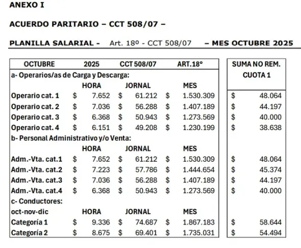 De acuerdo con el último convenio paritario, los empleados del gremio percibirán en noviembre los mismos salarios que en octubre, sin incrementos adicionales. Las escalas vigentes reflejan un ajuste del 3% respecto de los valores establecidos en julio.